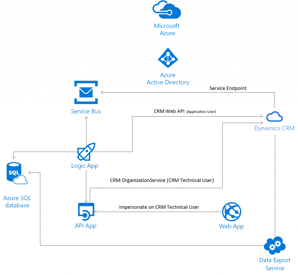I am fairly sure you would consider integrating your organizational data stored in Microsoft Dynamics 365 with Azure. Since Microsoft Azure offers services which you can easly use in the integration along with capabilities of scalability, automated deployment and monitoring.